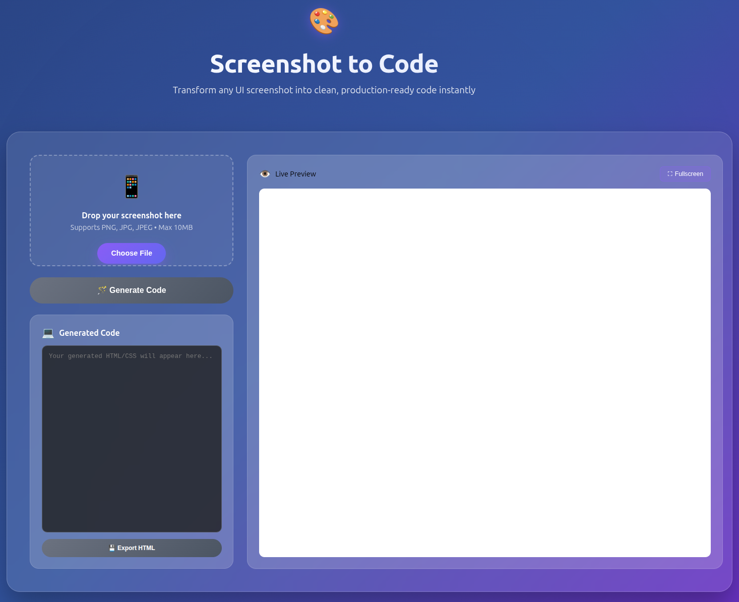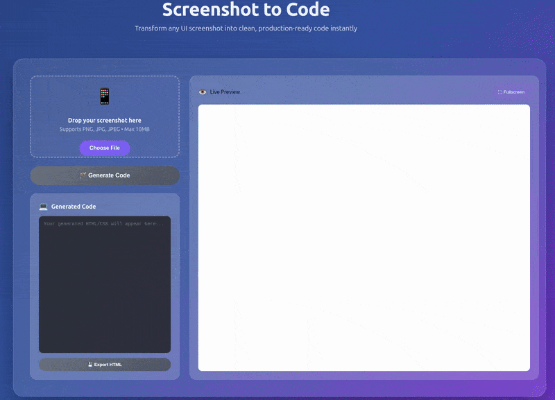 index.htmlfile containing all the CSS, HTML, and scripting logic. - A user-friendly UI.