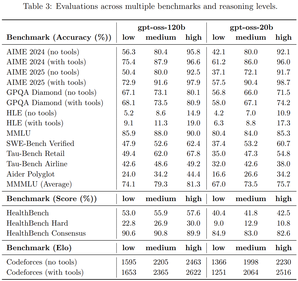 Here are the full results across multiple benchmarks and reasoning levels.