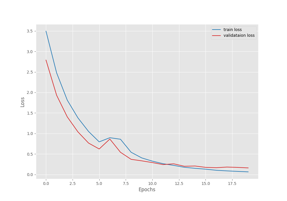 This time, we are training for 20 epochs while keeping the rest of the parameters the same. We use an additional boolean fine_tune command line argument, which tells the script to make the backbone trainable.