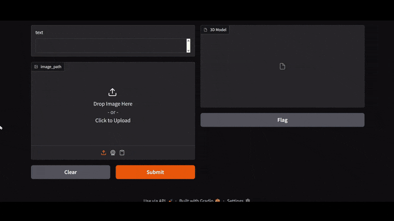 Here, our output box is a gr.Model3D component for visualizing the 3D mesh model.