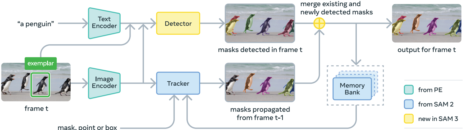 SAM 3 is not just a segmentation model anymore. It integrates a detection model (DETR-based), a segmentation model (Maskformer-based), and a tracker.