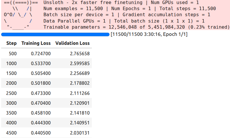 However, it is difficult to evaluate this model in a standard way while calculating WER (Word Error Rate). This is because the model does not always follow the format we have defined in the format_intersection_data. So, the final WER is not representative of the real number.