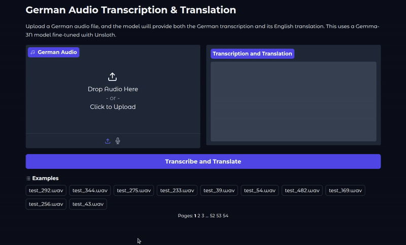 Upload a German audio file, and the model will provide both the German transcription and its English translation.