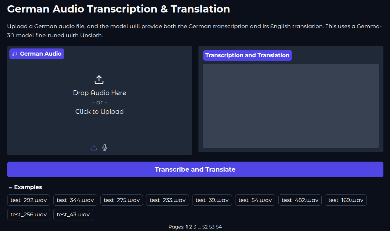 In this article, we trained the Gemma 3n E2B model for German audio transcription and translation to English. Starting from the preparation of the translation data, the fine-tuning, to creating a Gradio application, we covered a lot. We also discussed some of the challenges of evaluating our model.